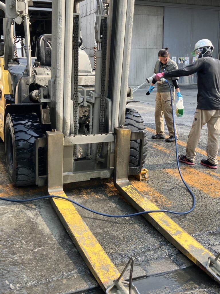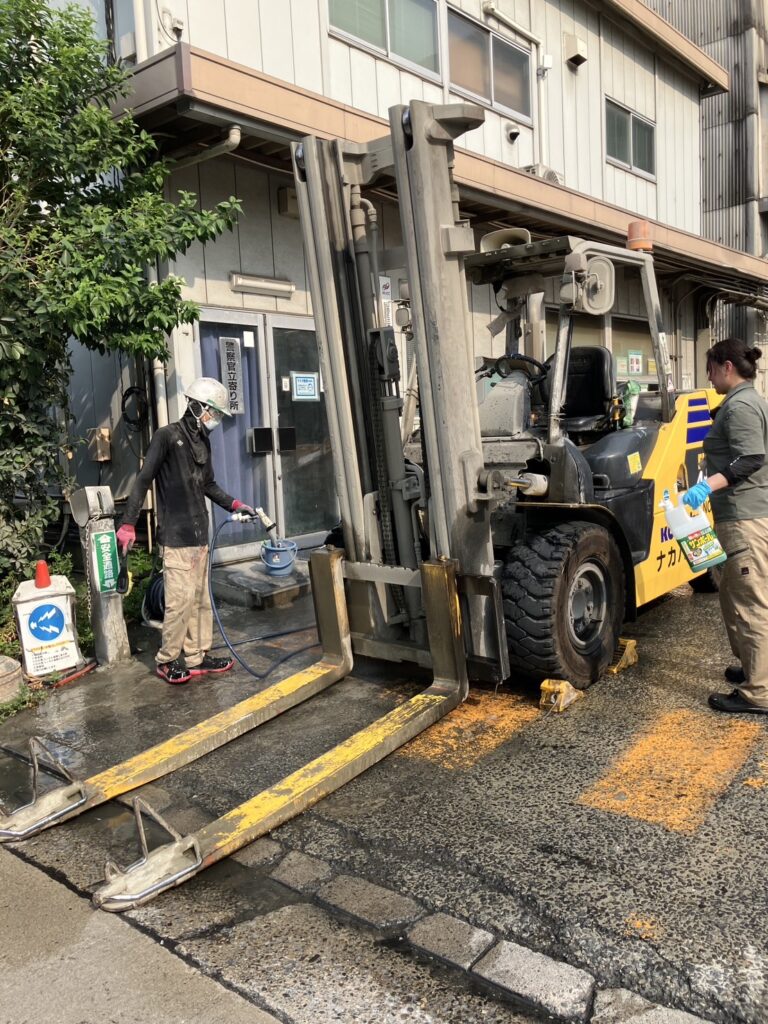 久しぶりに作業が早く終わったので皆がフォークリフトの洗車をしてくれました!